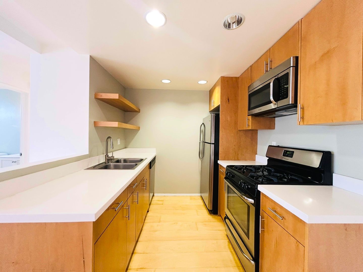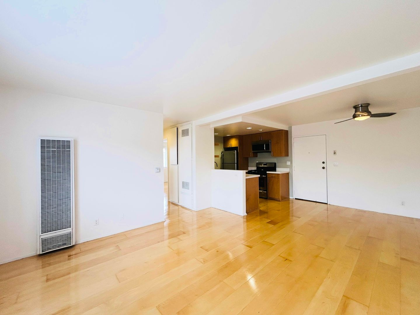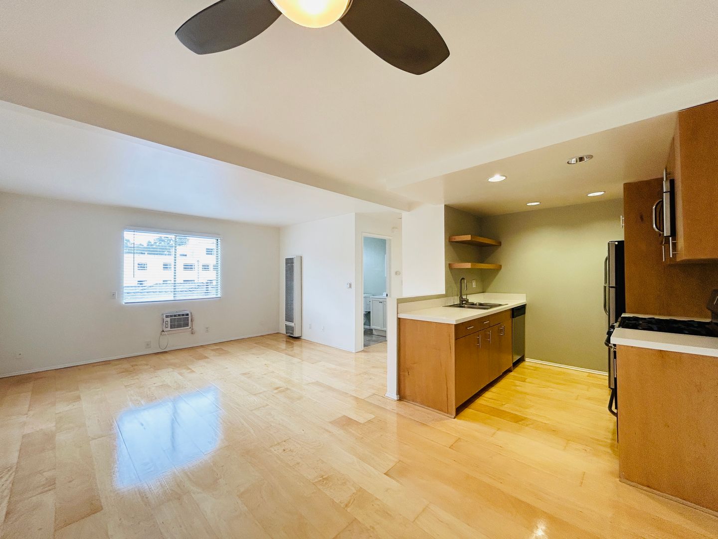 Simply gorgeous 2+1 with beautiful light-colored wood floors throughout. The living room is spacious, has an A/C unit, and opens out to the kitchen. The modern kitchen includes a stainless steel fridge, stove, microwave, dishwasher, dual sink, and recessed lighting. There is tons of counter space, cabinets, and floating shelves. In the hallway you’ll find a built-in cabinet great for storing away your linens. The bedrooms are nicely sized with a large window allowing in the natural light and a large closet with sliding doors. The bathroom has a combination bathtub and shower with white subway tile. There is assigned parking, and laundry is on-site. The walk score for this complex is 77. It is located minutes from the Eagle Rock Shopping Center, Trader Joe’s, Occidental College, Glendale Community College, trendy neighborhood restaurants, and easy access to the 134 and 2 freeways.